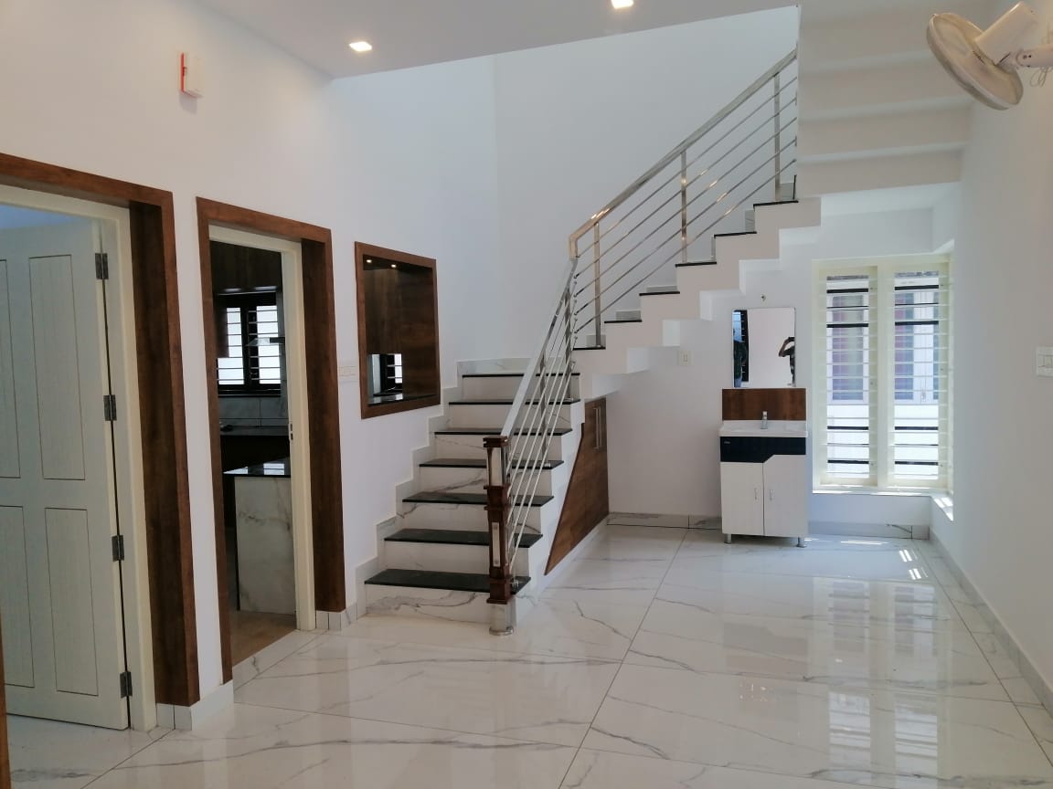 3bhk semi furnished house for sale in Nellikunnu. Good residential area, total land area of 4 cent,built up area 1600sqft. 3 bedrooms and 3 attacthed bathrooms, newly built house.Compound wall, tar road frontage, well water facility available. Price-66 Lacs(Negotiable).